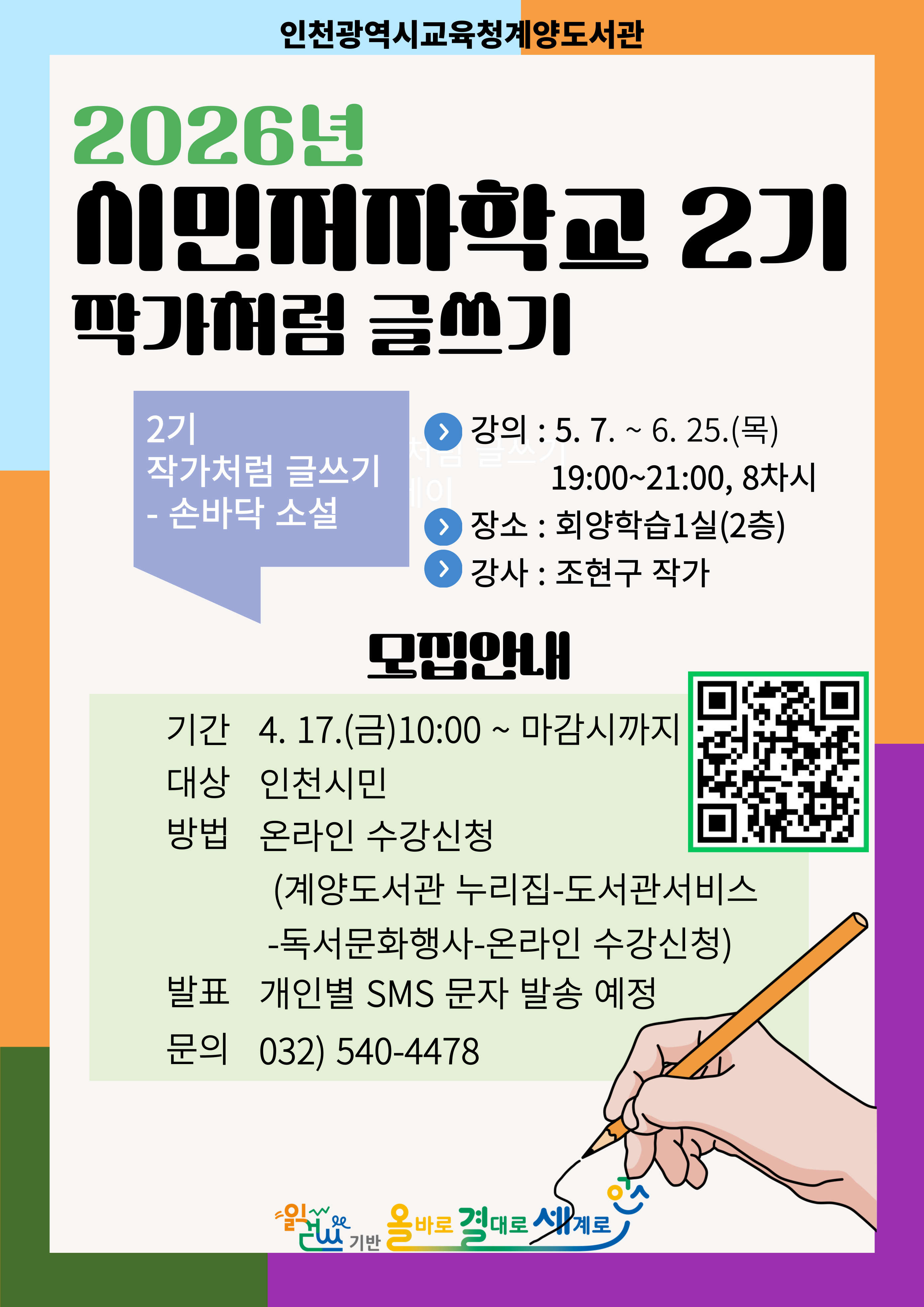 2026년 시민저자학교 2기「작가처럼 글쓰기-손바닥소설」참여자 모집