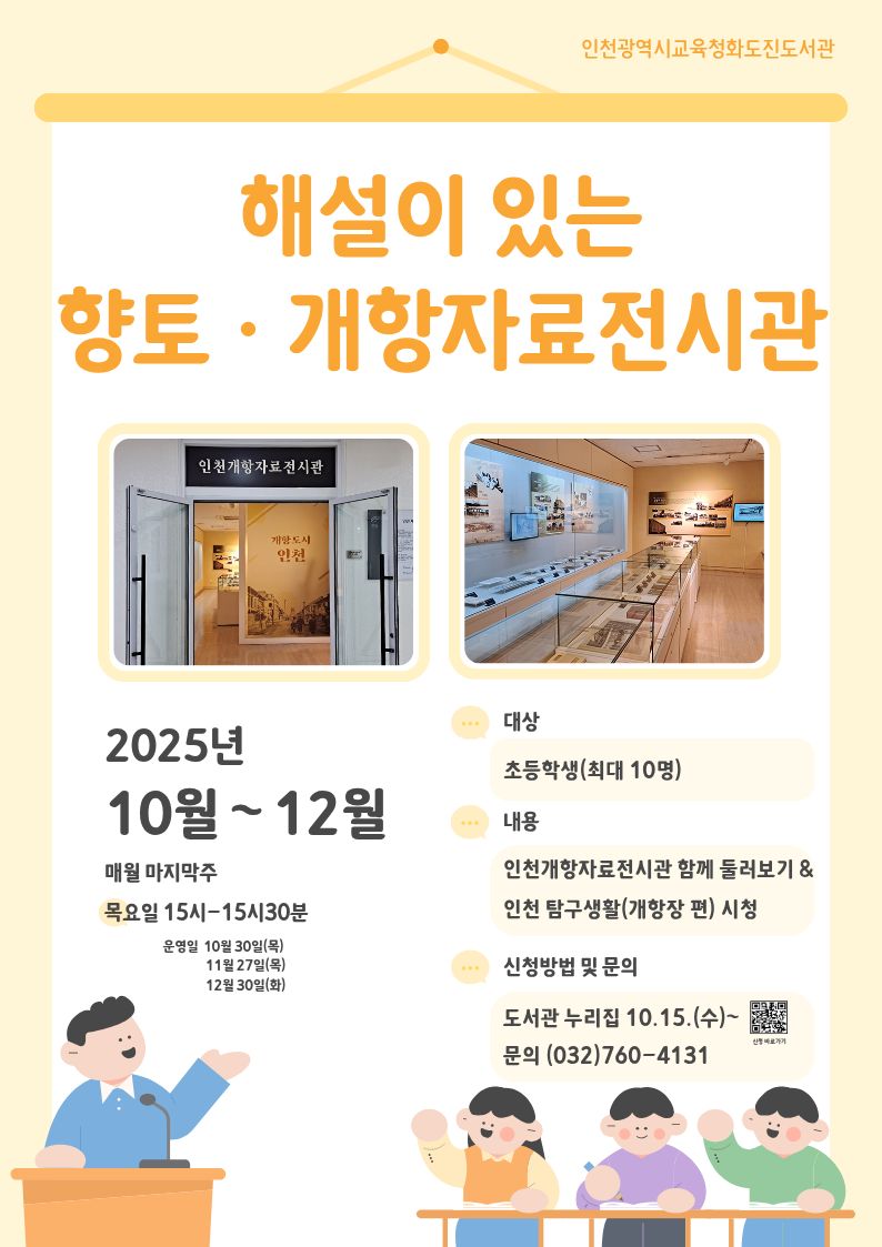 화도진도서관에서는 초등학생을 대상으로 「해설이 있는 향토 · 개항자료전시관」을 운영합니다.