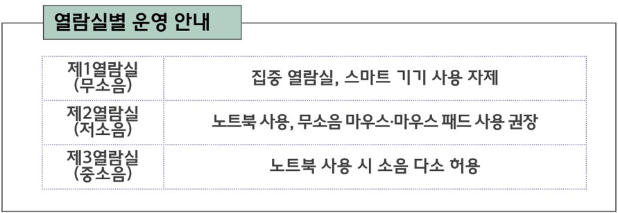 - 열람실별 운영 변경 안내