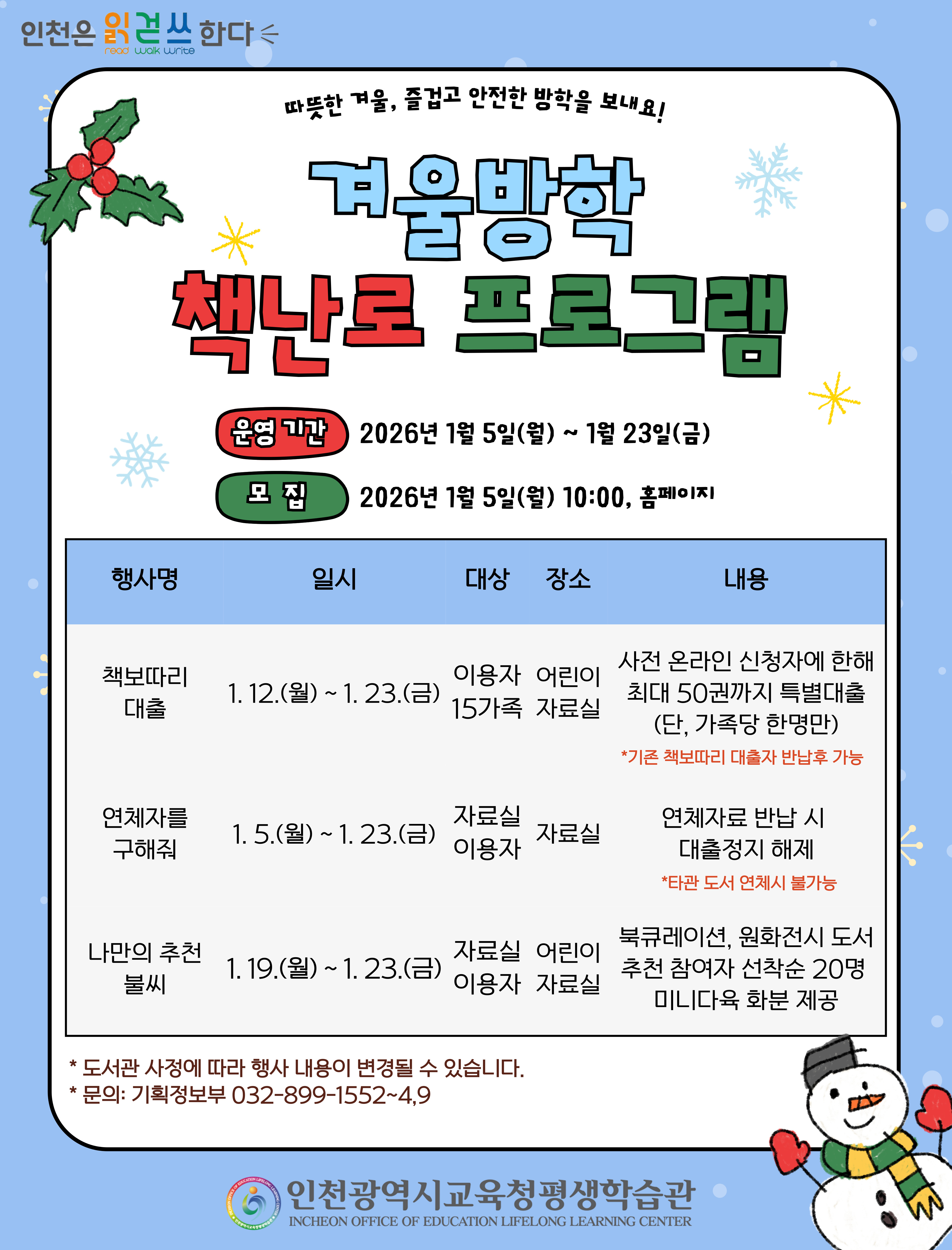 2026년 설 연휴 상호대차/무료택배 중단 안내