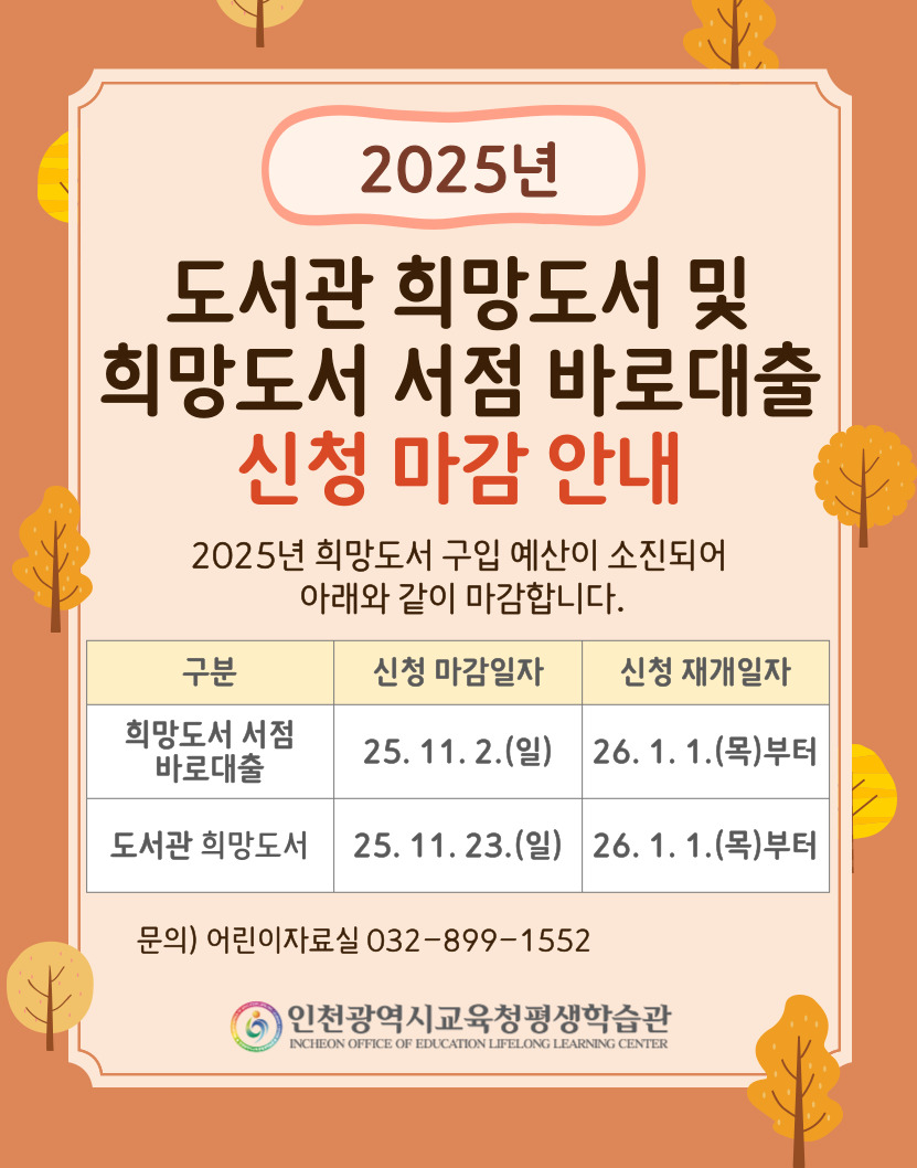 2025년 도서관 희망도서 및 희망도서 서점 바로대출 서비스 신청 마감 ...