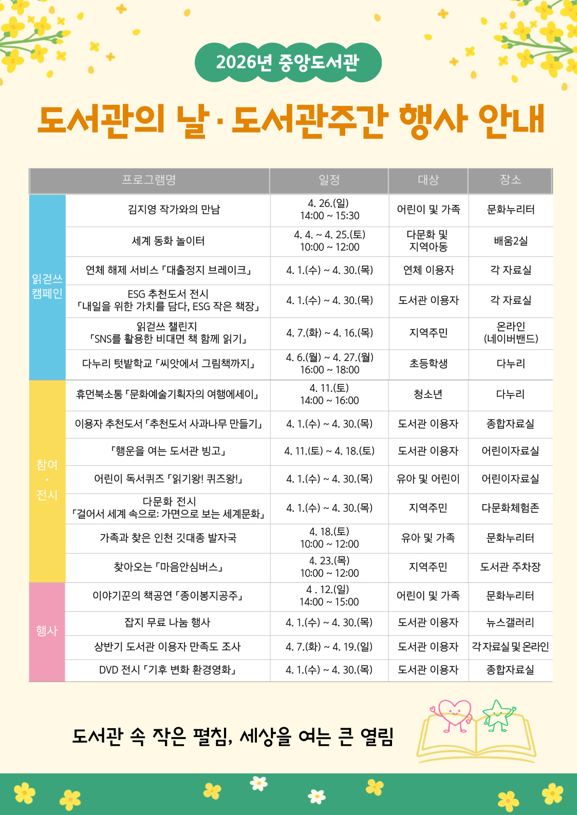 - 제4회 도서관의 날 및 제62회 도서관주간 기념 행사 안내