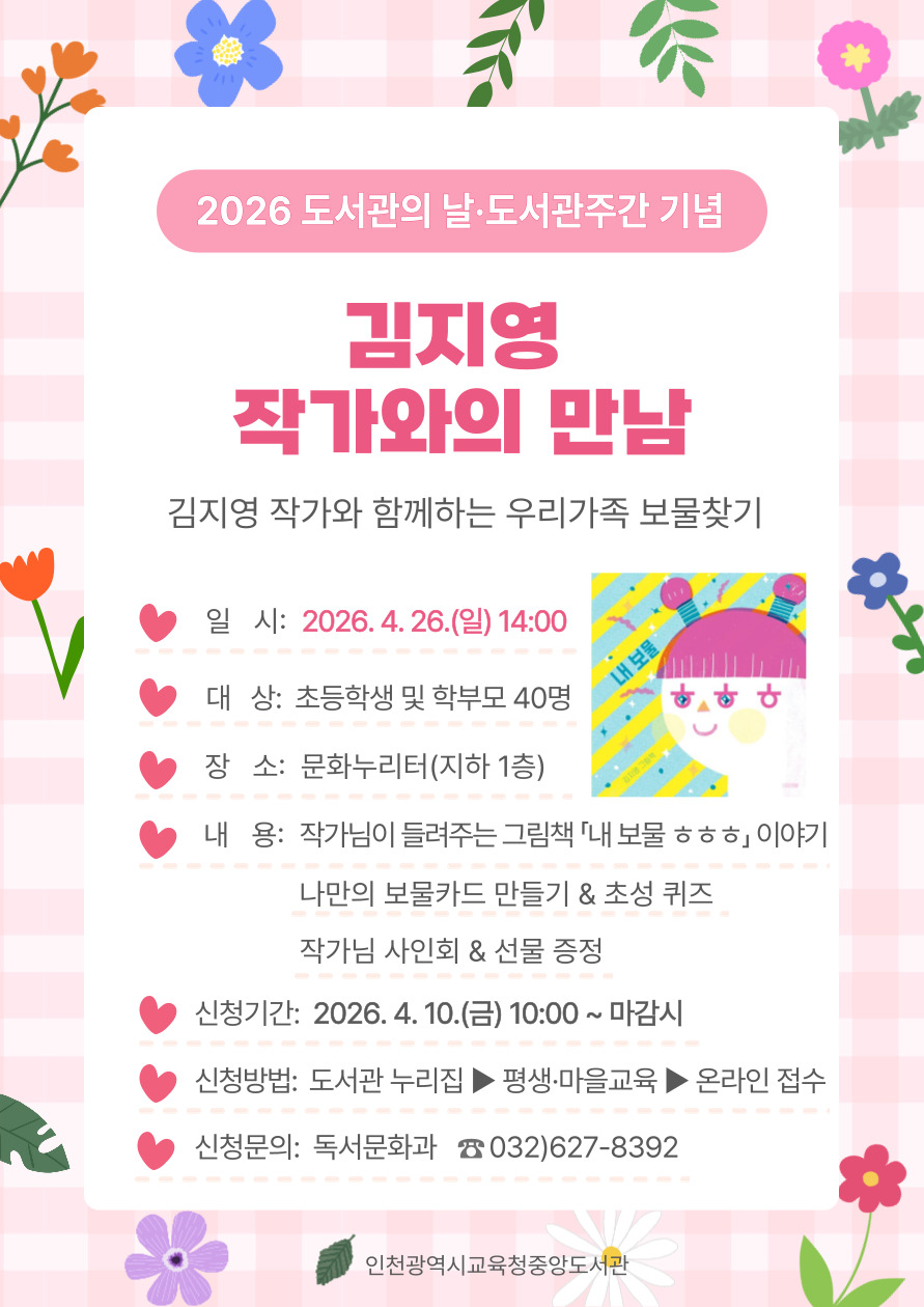 [도서관주간] 김지영 작가와의 만남 <내 보물 ㅎㅎㅎ> 참여자 모집