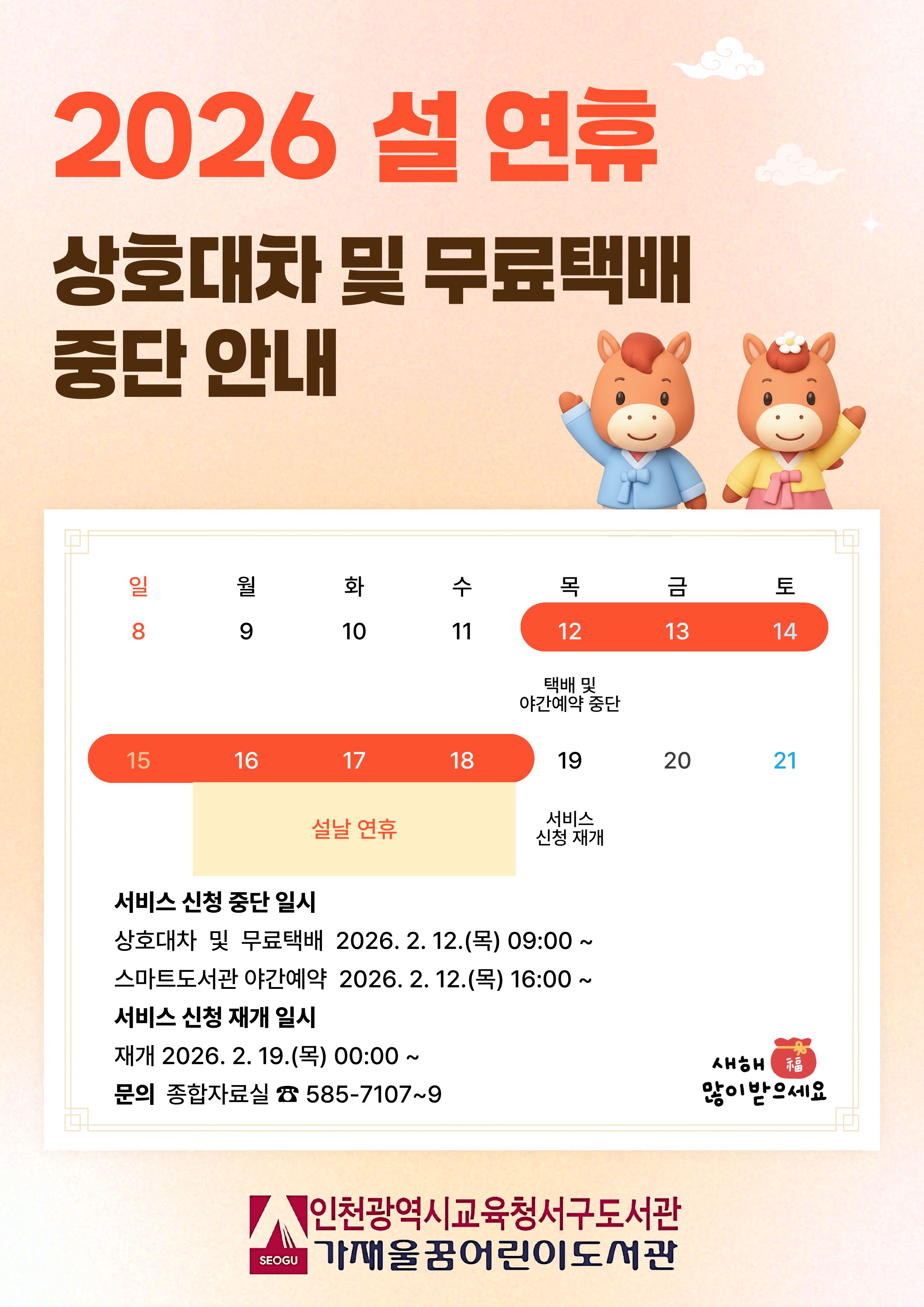 2026 설 연휴 상호대차 및 무료택배 중단 안내