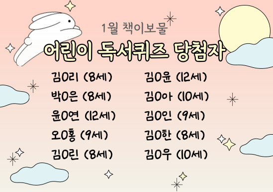 짝짝짝!!! 2026년 1월 「책이보물」 어린이 독서퀴즈 당첨자를 안내합니다.