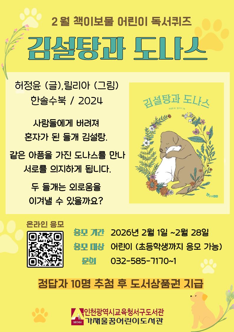 - 2026년 2월 「책이보물」 어린이 독서퀴즈 운영 안내