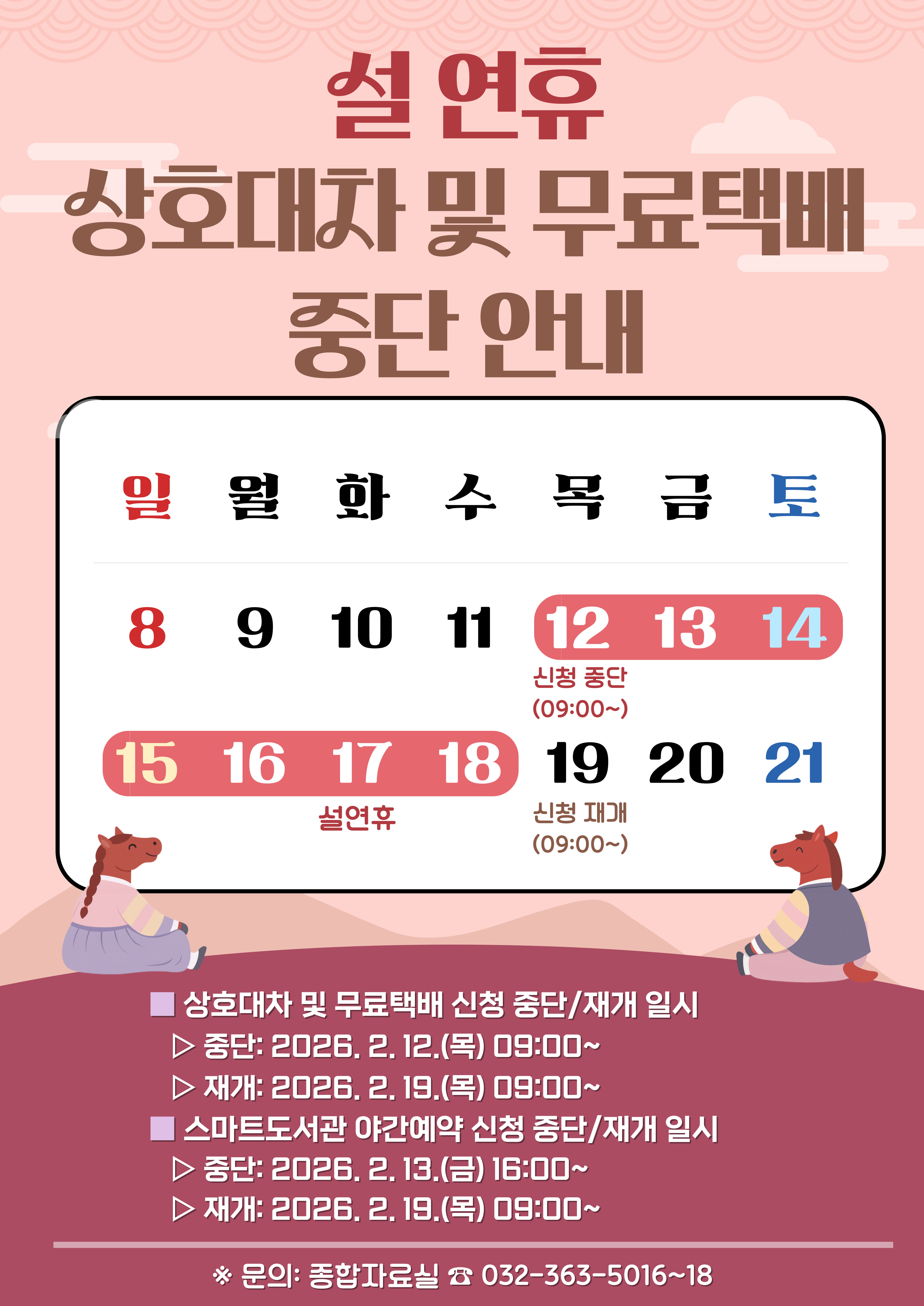 2026년 설 연휴 상호대차 및 무료택배 중단 안내