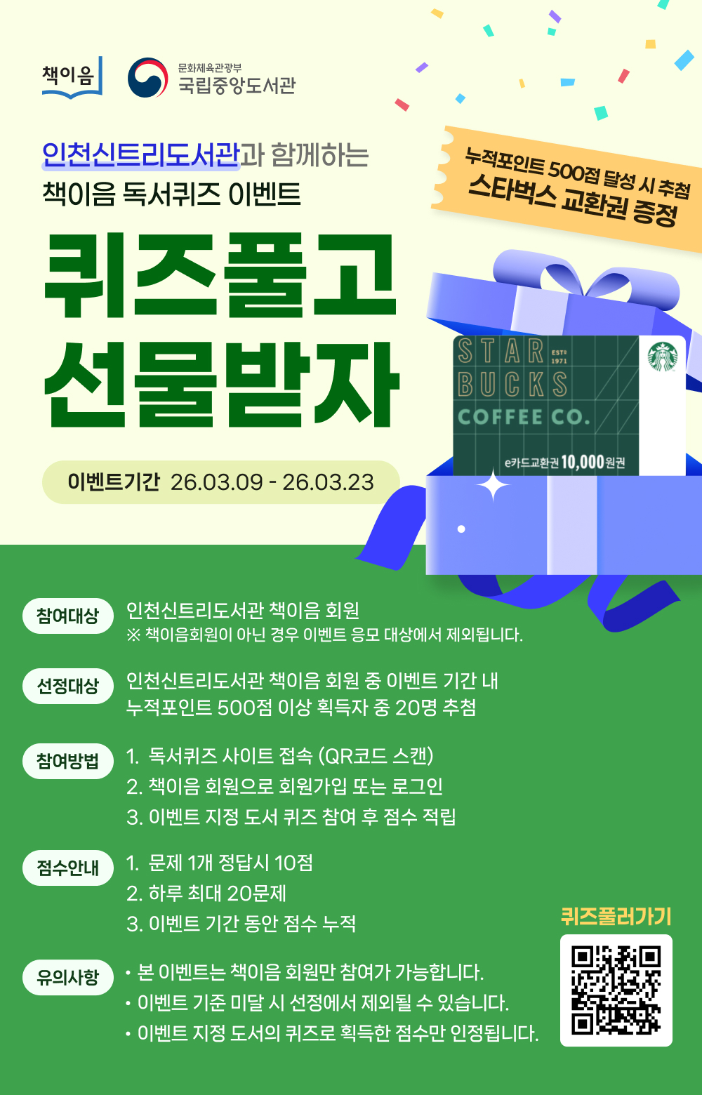 인천신트리도서관과 함께하는 책이음 독서퀴즈 이벤트