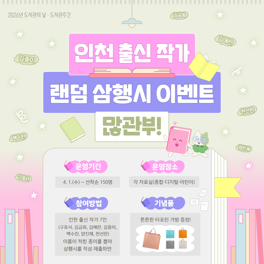 도서관의 날·도서관주간 「랜덤! 인천 출신 작가 삼행시」 운영 안내